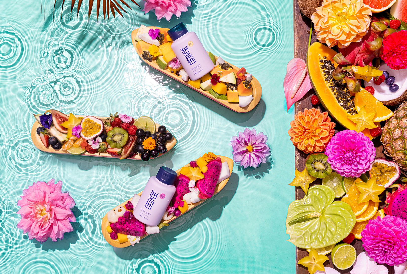 A sensorial world built from tropical Balinese ingredients, where scent takes form through colour, texture, and abundance. Dragonfruit, lychee, and mango informed a vibrant visual system, expressed through tactile compositions and material contrast to evoke freshness and indulgence. The result delivers an immediate, feel-good experience, positioning the range as both playful and elevated.
